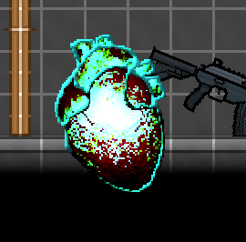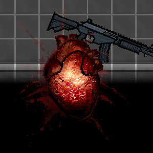 Being inspired by the grittiness of Postal 2's UI and the general aesthetic of the game (compressed realistic images) - an idea of a realistic beating heart sparked almost immediately. So off i went, tracing and drawing over a random animation i found on YouTube. I lovered the fps to about 10, and even after that deleted a bunch of frames, and finally i ended up with 15 sprites of the animation (and a blood splatter to go behind the heart)